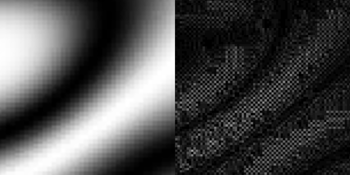 Even though the average results are much lower than Spark, there are a few cases where Spark produces higher quality results. This is the case on very smooth images, where AFRC compression results in visible dither patterns that also reveal the block size: